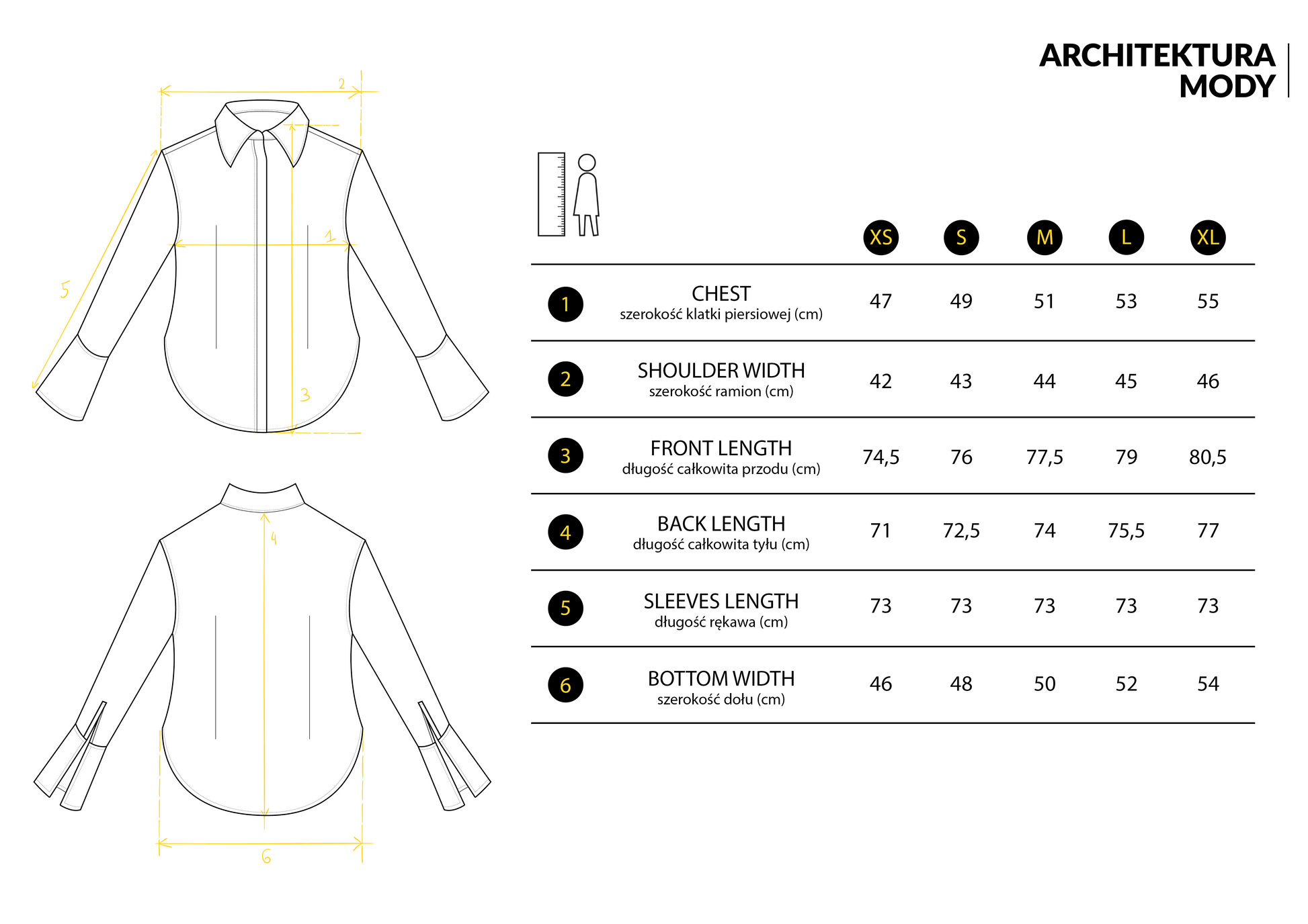Koszula jest stopniowana według konfekcyjnych reguł, po obwodach - jak w tabeli rozmiarów.